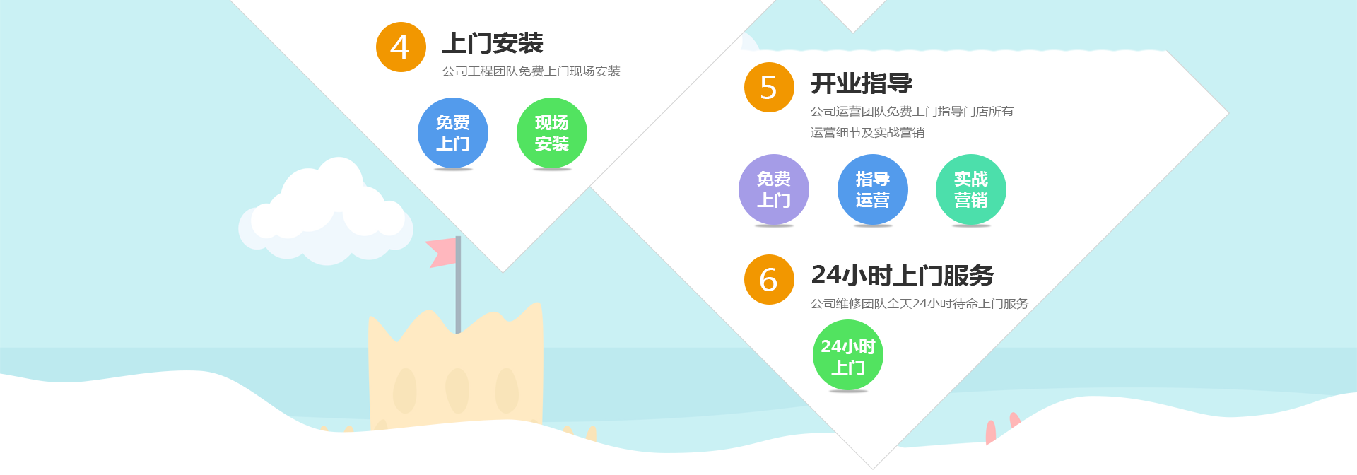 提供樂(lè)園整體的設(shè)計(jì)圖及效果圖、開(kāi)業(yè)設(shè)備調(diào)試、開(kāi)業(yè)指導(dǎo)及培訓(xùn)。